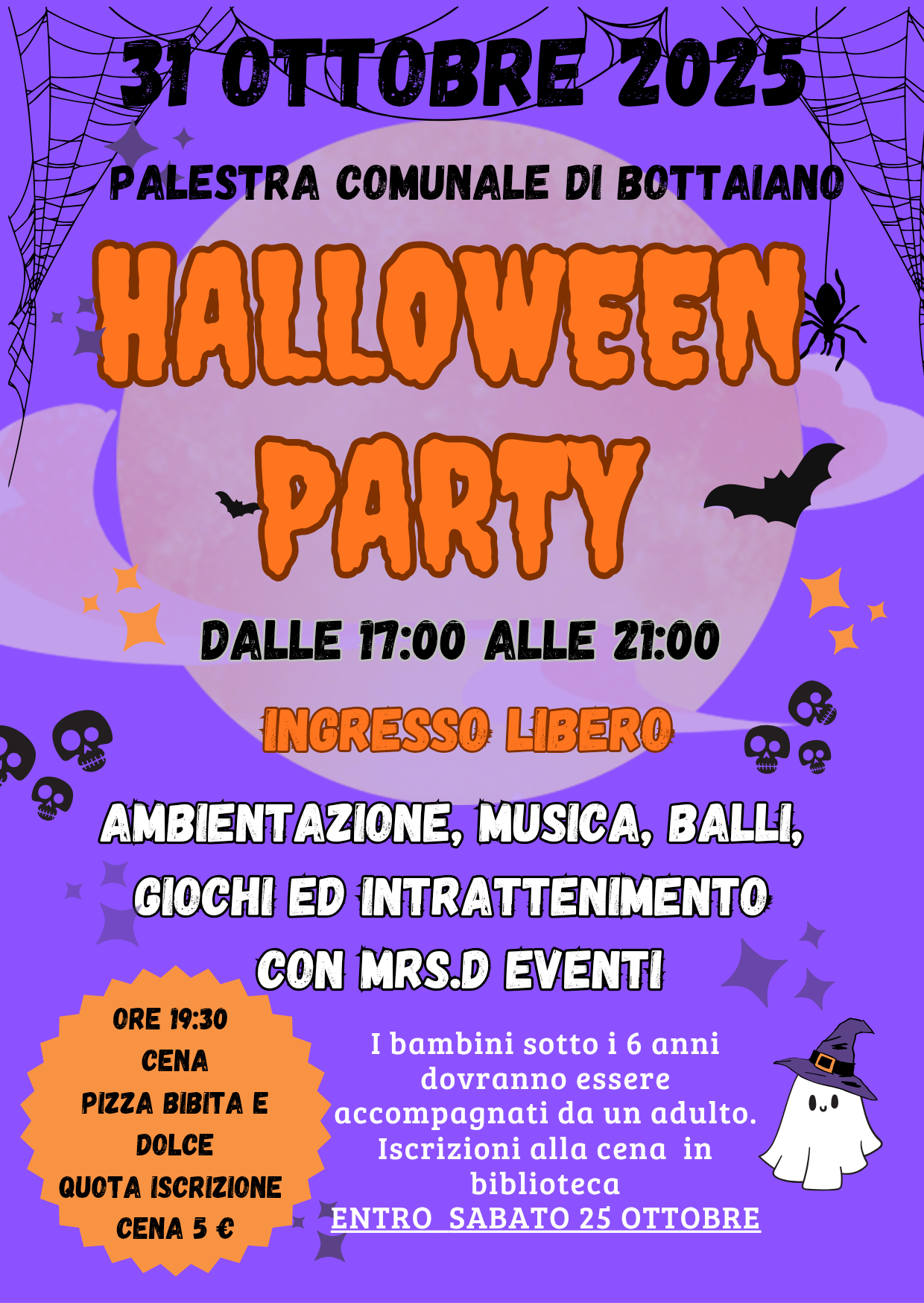 Preparate i vostri costumi più terrificanti e unitevi a noi per l'Halloween Party 2025 che si terrà alla Palestra Comunale di Bottaiano.